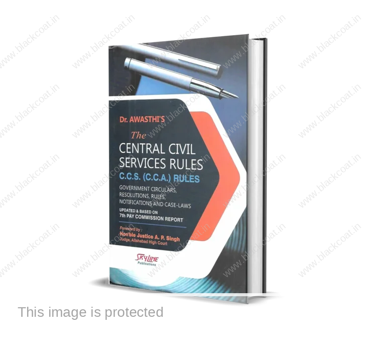 Skyline Pub’s The Central Civil Services Rules C.C.S. (C.C.A.) Rules by Dr. Awasthi – 7th Edition 2022. (i)THE CENTRAL CIVIL SERVICES (CLASSIFICATION, CONTROL AND APPEAL) RULES, 1965 (ii)THE CENTRAL CIVIL SERVICES (CONDUCT) RULES, 1964 (iii) THE CENTRAL CIVIL SERVICES (PENSION) RULES, 1972 (iv) THE CENTRAL CIVIL SERVICES (TEMPORARY SERVICES) RULES, 1965 (v)THE CENTRAL CIVIL SERVICES AND CIVIL POSTS (UPPER AGE- LIMIT FOR DIRECT RECRUITMENT) RULES, 1998 (vi) THE CENTRAL CIVIL SERVICES (LEAVE) RULES, 1972 (vii) THE CENTRAL CIVIL SERVICES (REVISED PAY) RULES, 1997 (viii) MEMORANDUM EXPLANATORY TO THE CENTRAL CIVIL SERVICES (REVISED PAY) RULES,1997 (ix) THE CENTRAL CIVIL SERVICES (REVISED PAY) RULES, 2008 (x)MEMORANDUM EXPLANATORY TO THE CENTRAL CIVIL SERVICES 1 (REVISED PAY) RULES, 2008 (xi) THE CENTRAL CIVIL SERVICES (JOINING TIME) RULES, 1979 (xii) THE CENTRAL CIVIL SERVICES (COMMUTATION OF PENSION) RULES, 1981 (xiii) THE CENTRAL CIVIL SERVICES (EXTRAORDINARY PENSION) RULES, 1939 (xiv) THE CENTRAL CIVIL SERVICES (MEDICAL EXAMINATION) RULES, 1957 (xv) THE CENTRAL SERVICES (MEDICAL ATTENDANCE) RULES,1944 (xvi) THE PAYMENT OF ARREARS OF PENSION (NOMINATION) RULES, 1983 (xvii) THE PENSIONS ACT, 1871.