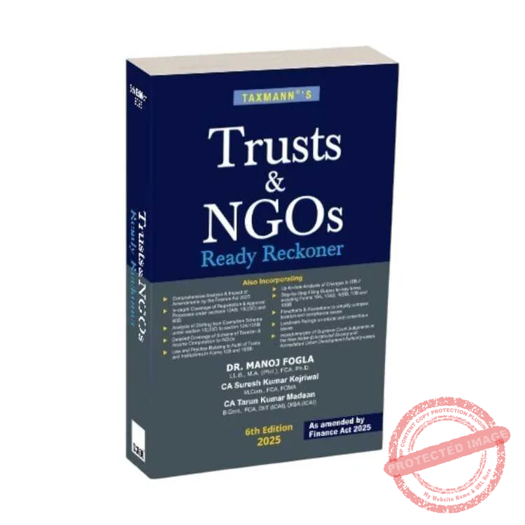 Trusts & NGOs Ready Reckoner (6th Edition | 2025) is a comprehensive guide that simplifies the laws governing charitable trusts, NGOs, religious institutions, and other non-profit organisations in India. This book provides an in-depth analysis of the latest amendments introduced by the Finance Act 2025, particularly regarding trusts and NGOs’ registration, approval, and taxation. This Edition incorporates recent judicial rulings, including landmark Supreme Court judgments, and contains extensive practical guidance on preparing and filing Forms 10A, 10AB, 10BD, 10B, 10BB, and the revised ITR-7. It also offers flowcharts, illustrations, and step-by-step instructions to simplify critical procedures related to the registration, compliance, and audit processes under sections 12AB, 10(23C), 80G, and others.