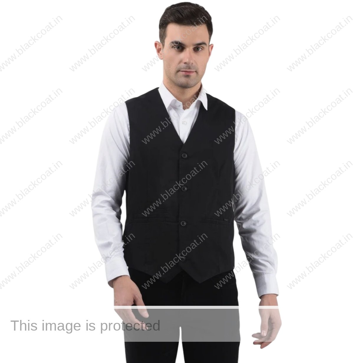 Raymond Men’s Black Latest V Neck Half Slim Sleeveless Waistcoat For Advocates By Blackcoat