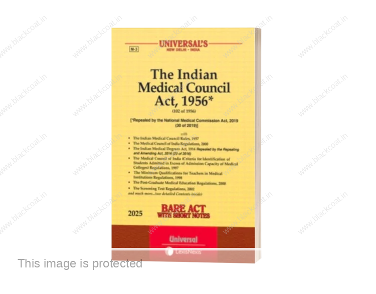 The Indian Medical Council Act, 1956 (102 of 1956) [Repealed by the National Medical Commission Act, 2019 (30 of 2019)] with • The Indian Medical Council Rules, 1957 • The Medical Council of India Regulations, 2000 • The Indian Medical Degrees Act, 1916 Repealed by the Repealing and Amending Act, 2016 (23 of 2016) • The Medical Council of India (Criteria for Identification of Students Admitted in Excess of Admission Capacity of Medical Colleges) Regulations, 1997 • The Minimum Qualifications for Teachers in Medical Institutions Regulations, 1998 as amended by (Amendment) Regulations, 2019 • The Post-Graduate Medical Education Regulations, 2000 as amended by (Amendment) Regulations, 2019 • The Screening Test Regulations, 2002 as amended by (Amendment) Regulations, 2019 and much more…(see detailed Contents inside)