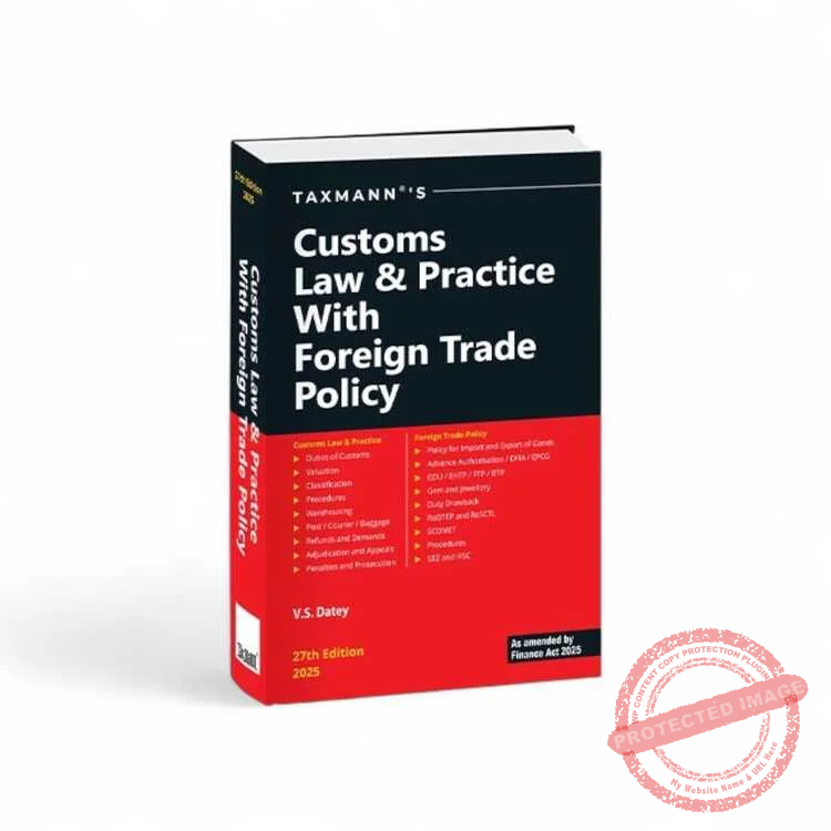 Customs Law & Practice with Foreign Trade Policy is a comprehensive treatise that consolidates and explains the entire spectrum of India’s customs law and associated procedures alongside the country’s Foreign Trade Policy (FTP). Updated to reflect the amendments by the Finance Act 2025, this work deciphers complex legal provisions into a reader-friendly format. It seamlessly integrates statutory provisions, interpretative rules, case laws, departmental clarifications, and practical insights, making it an indispensable resource for professionals involved in import-export operations and customs matters. The book delves into every aspect of customs law—from fundamentals of customs duties, valuation, classification of goods, and warehousing procedures to specialised topics like baggage, post/courier clearances, refund procedures, adjudication, and appeals. Equally extensive is its coverage of the Foreign Trade Policy (FTP), focusing on import-export frameworks, special authorisations (AA/DFIA/EPCG), EOU/EHTP/STP/BTP procedures, Gem & Jewellery sector rules, export incentives like Duty Drawback/RoDTEP, SEZ/IFSC regulations, etc.